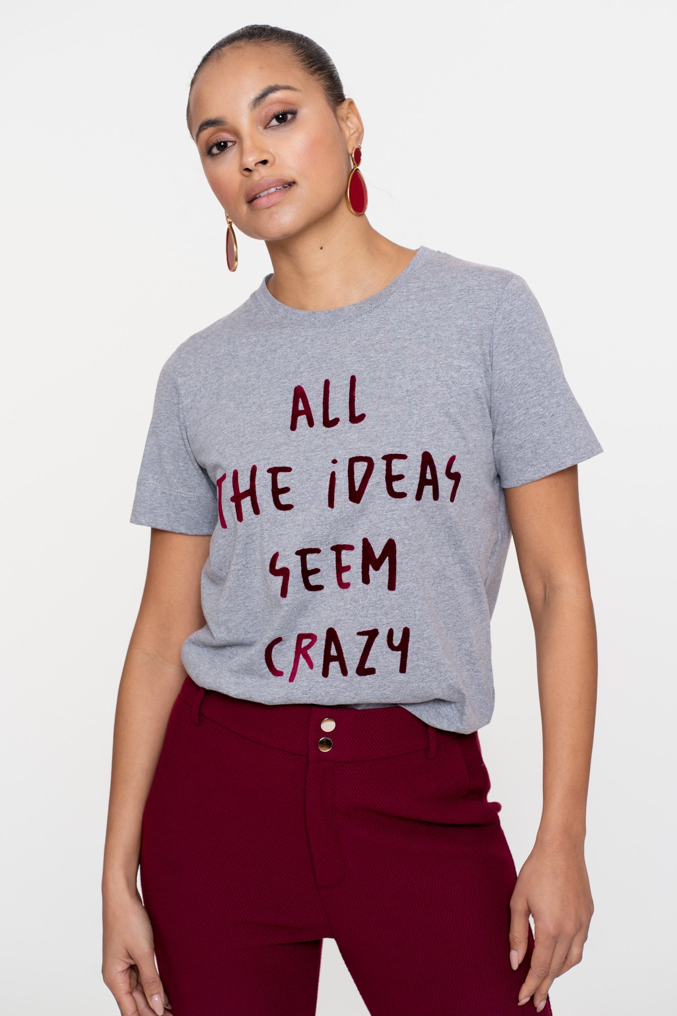 Geisha dames basic T-shirt met tekst 'All the ideas seem crazy'